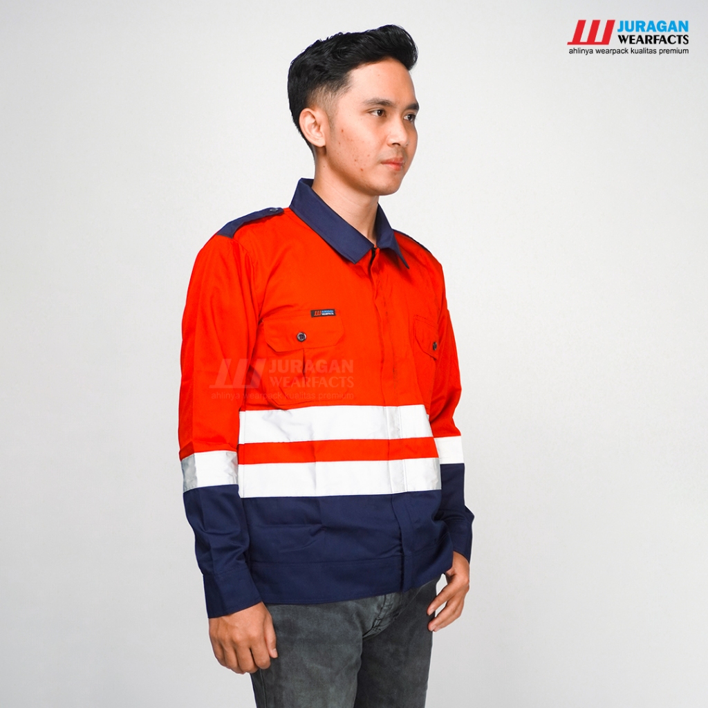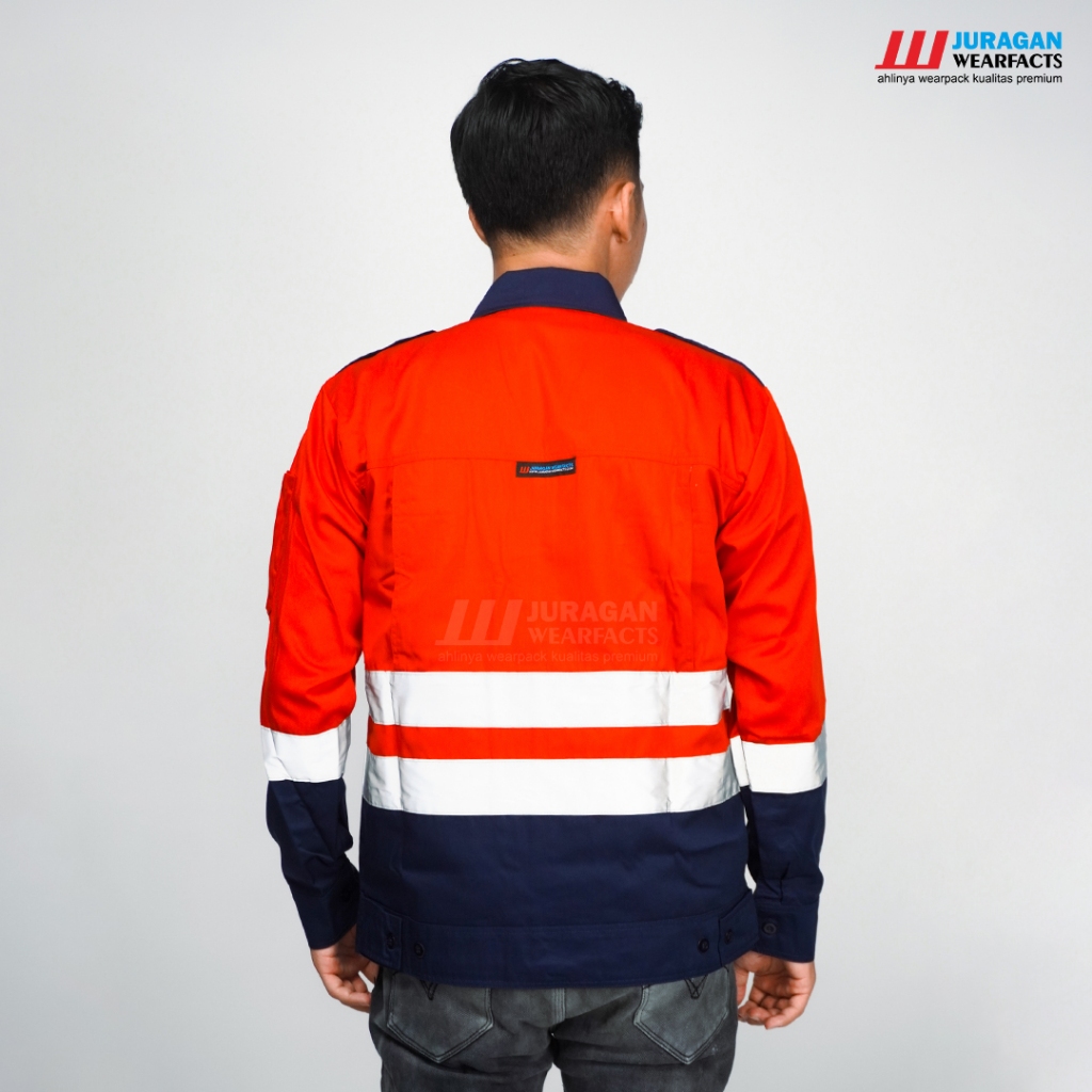 Juragan Wearfacts - Baju Wearpack Safety Model Elite Warna Merah Kombinasi Biru Navy