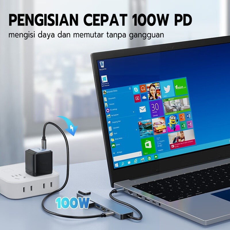 Skytime USB Hub 8 in 1 Adapter Converter type c to HDMI Type C SD/TF Card 4K Kabel 100M Fungsi OTG usb hub type c - DS01