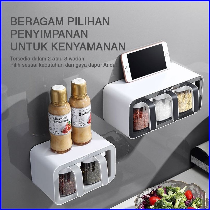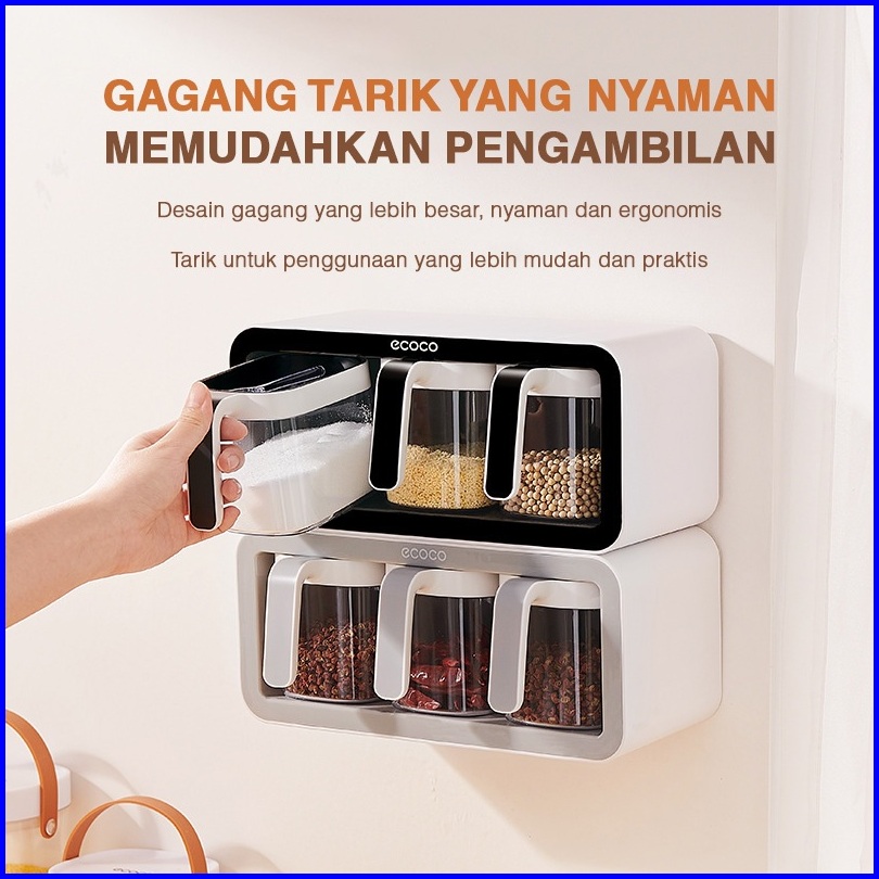 Ecoco Wall Mounted Seasoning Box - Tempat Wadah Bumbu Dapur Gula Aestetik