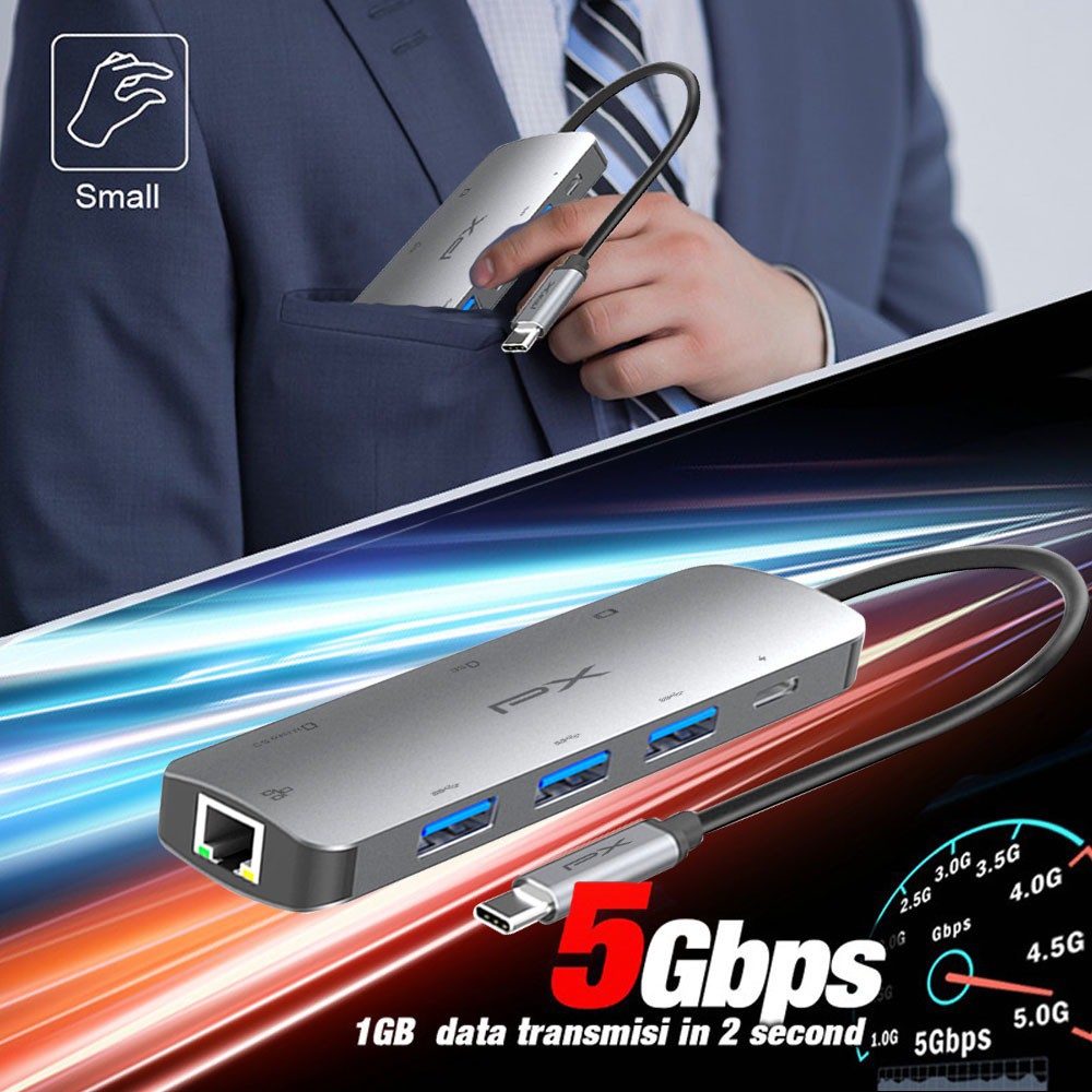 Converter Hub Adapter 8 in 1 4K USB Type C 3.1 USB HDMI PX UCH18