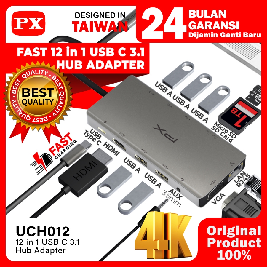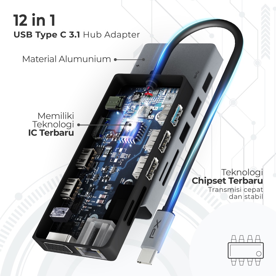 USB Hub Type C 3.1 to HDMI USB Converter iOS Windows 12 in 1 PX UCH012