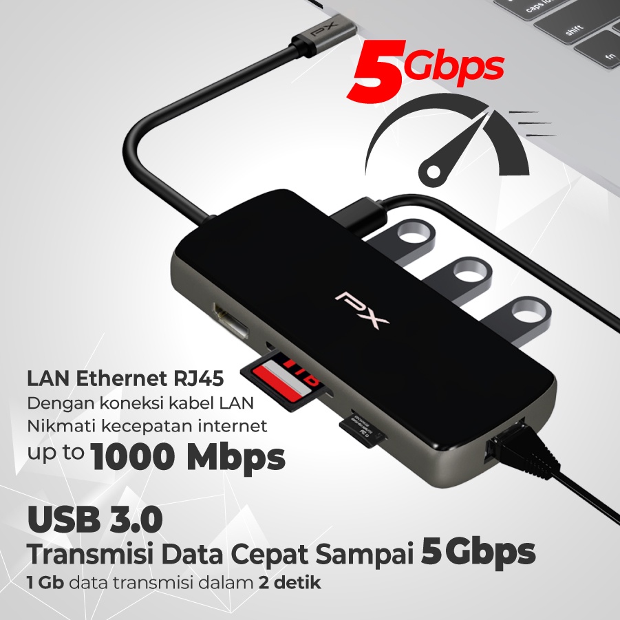 USB Type C Hub Converter to HDMI USB LAN Micro SD 8 in 1 PX UCH80B