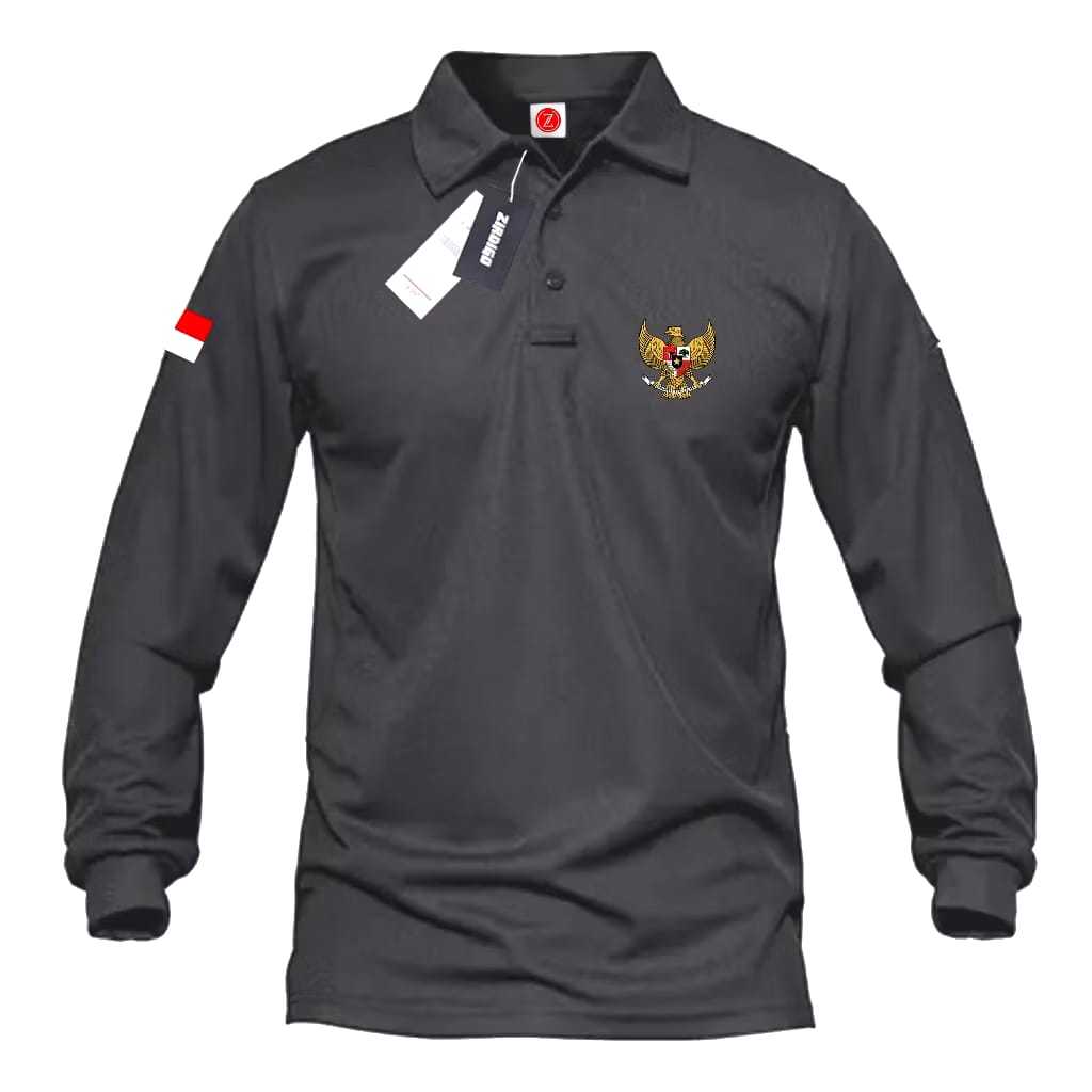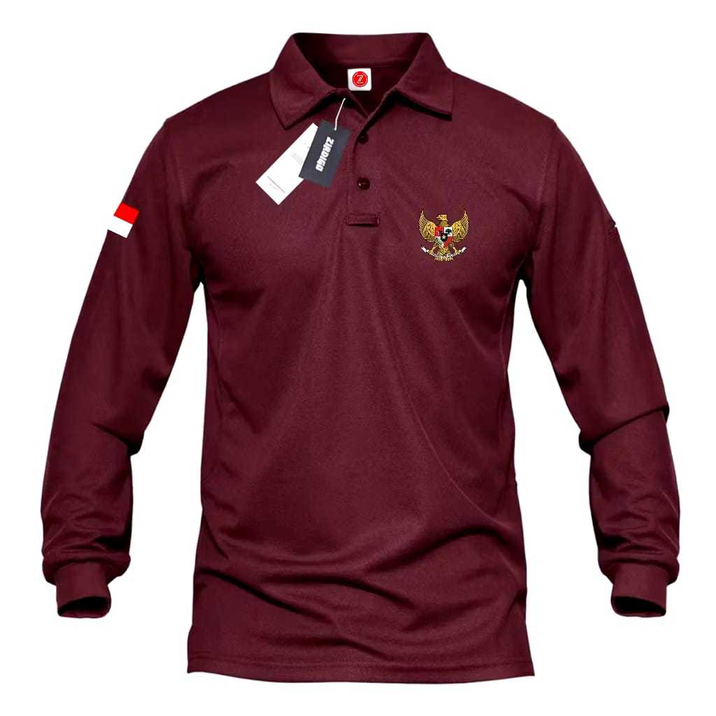 Polo Panjang Logo Bendera Ditangan + Garuda / Polo Shirt Unisex / kaos Kerah Distro Olahraga /
