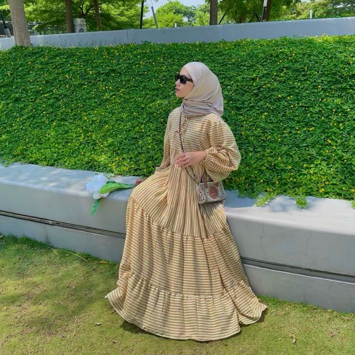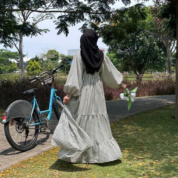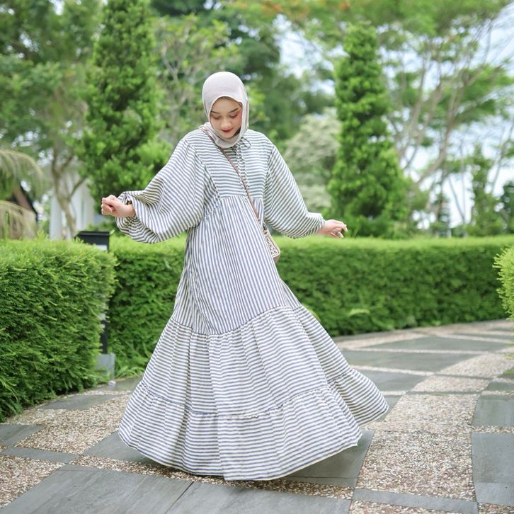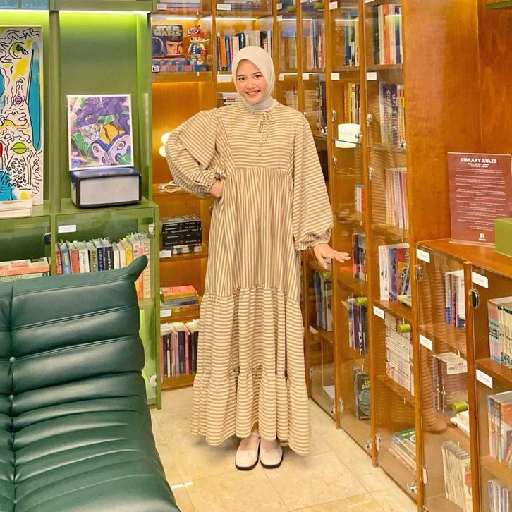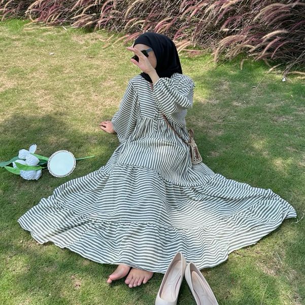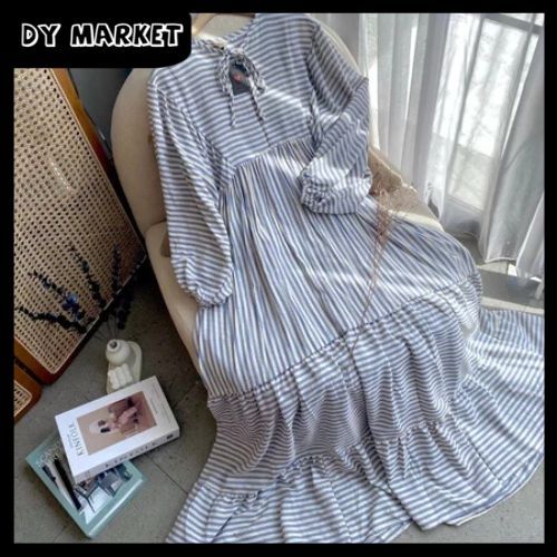 Suzy Dress Wanita Korean Vintage Pudar Katun Salur Busui Friendly Resleting Depan Murah