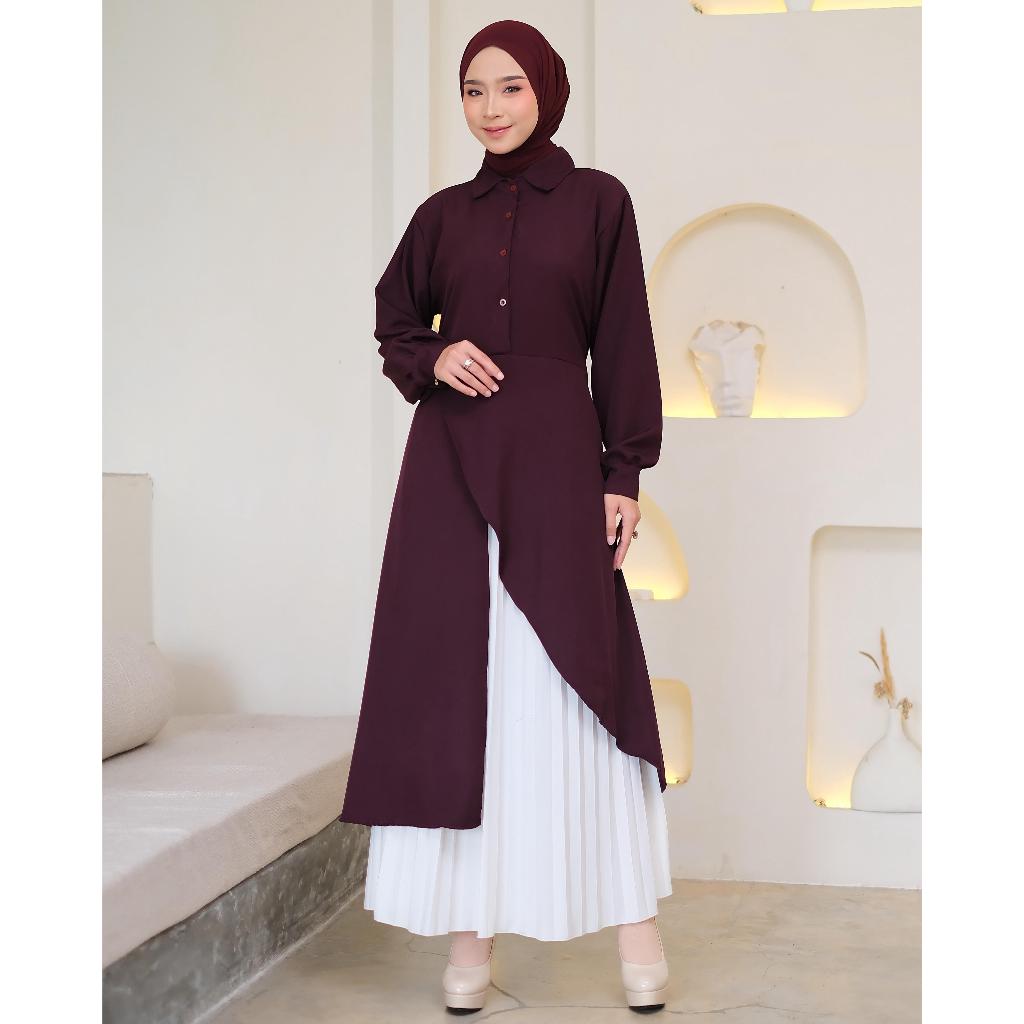 Miqdad Fashion - Athalia Long Tunik - Kemeja Wanita Lengan Panjang - Baju Atasan Wanita Muslim Kekinian Terbaru