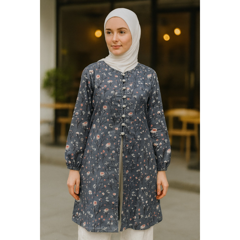 Atasan SABILA SLIT TUNIK Katun Motif Fit to L