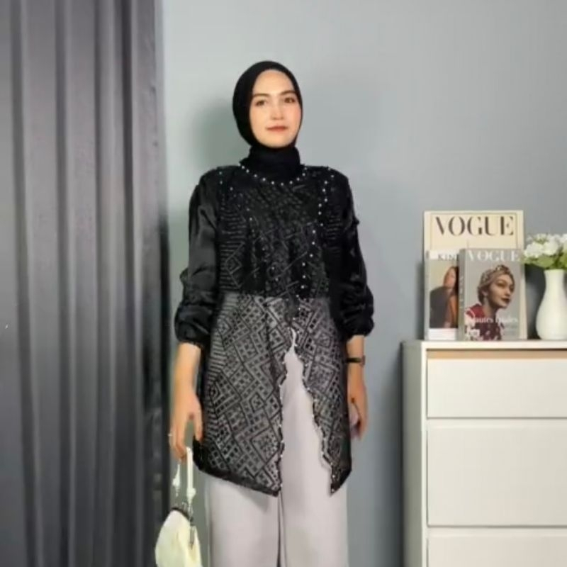 Fiona Outer Tunik Brokat Silang Full Payet Bordir Baju Lebaran Kondangan Kekinian Wisuda Bridesmaids