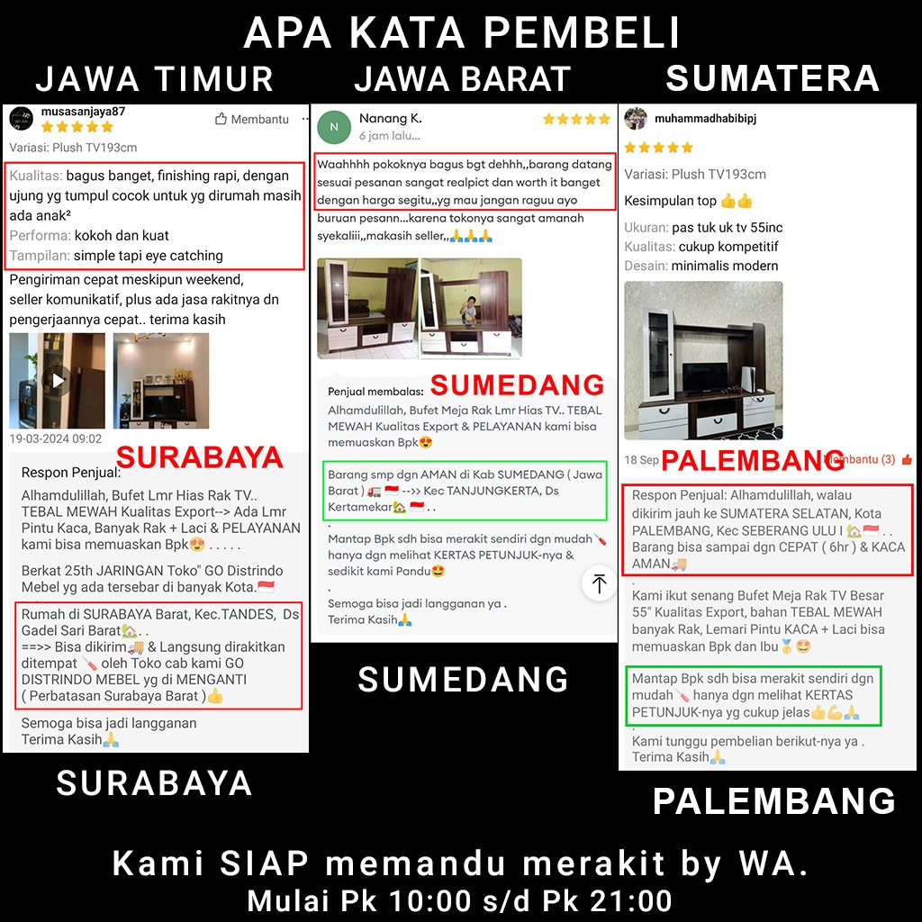 Distrindo - Bufet Rak Meja TV 4555" Minimalis Mewah Murah TEBAL dengan Lemari Hias Kaca + Laci