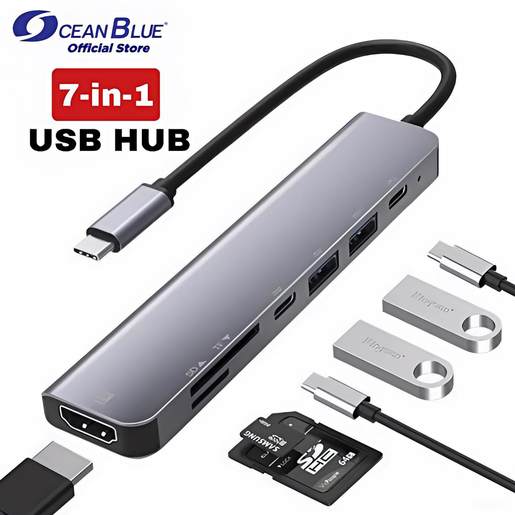 USB HUB Converter Type C HDMI 4K 7in1 Micro SD Card BYEASY OCEANBLUE Macbook Laptop PC