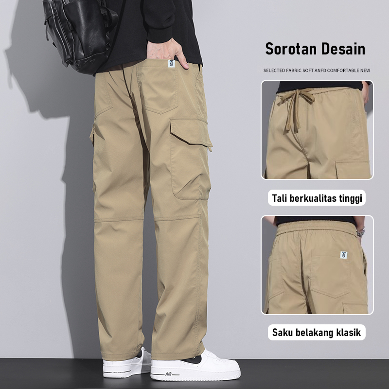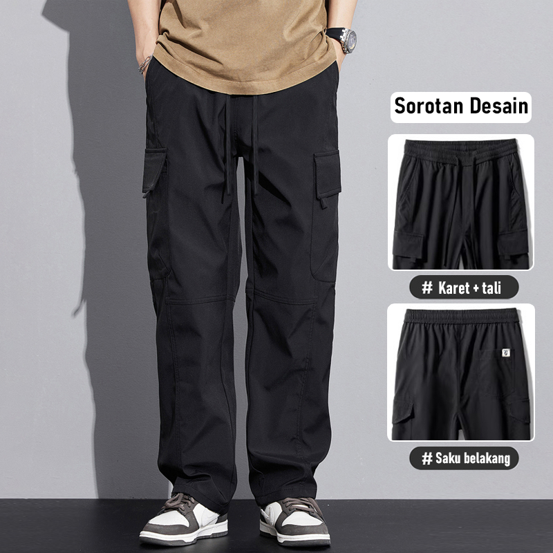 [Mall] Celana Cargo Panjang Pria Kulot Sutra Es Dewasa Baggy Pants Korean Style Causal Celana Kargo