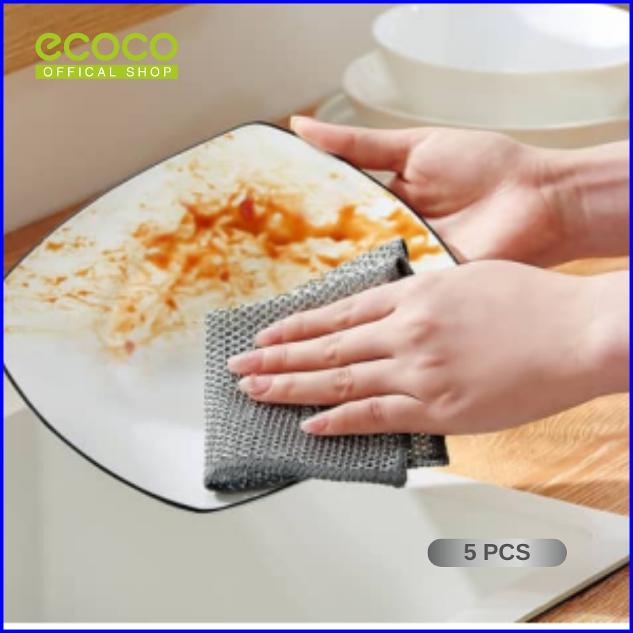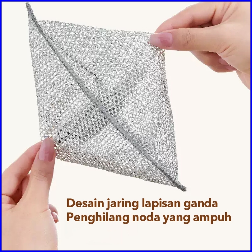 Ecoco Silver Cloth Isi 5- Kain Lap Kawat Baja Dapur Awat Baja Khusus Anti Lengket Handuk Piring Minyak Kain Jaring Kawat