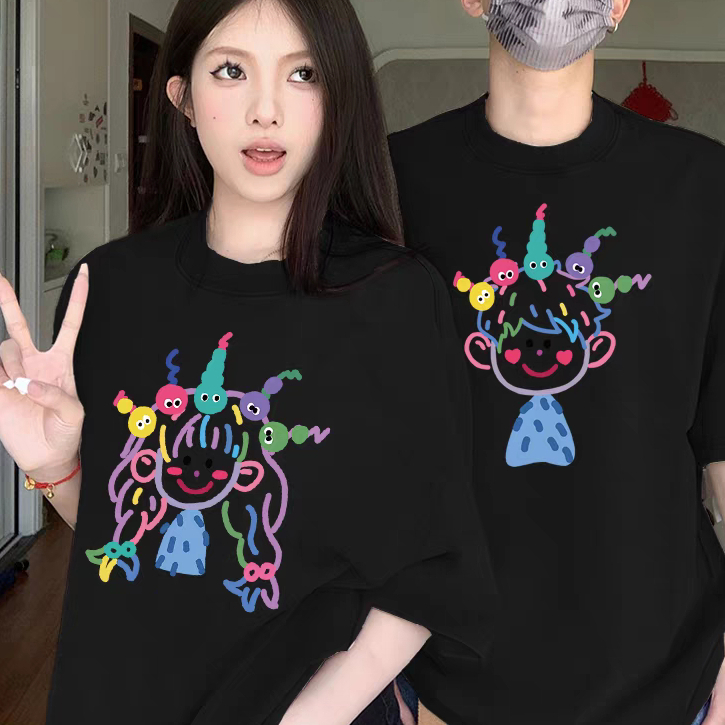 Kaos Couple Lengan Pendek dengan Desain Kreatif dan Konyol, Lebar, Bernapas Lancar, Katun, Unisex
