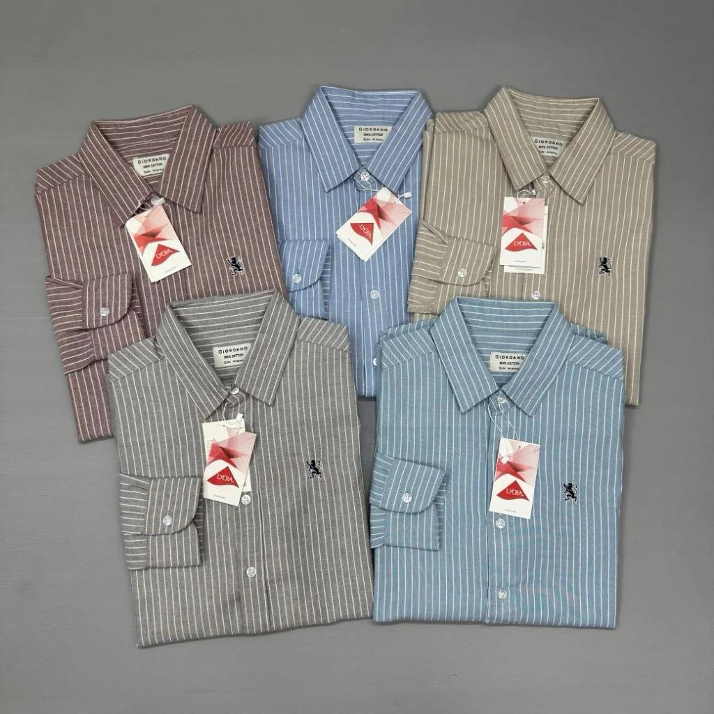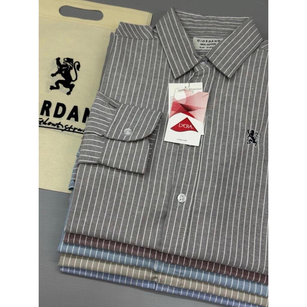 [Star] Kemeja Pria Dewasa Lengan Panjang Salur Garis Giordano Original Premium Slimfit Casual Bkn HM Zara Uniqlo Terbaru