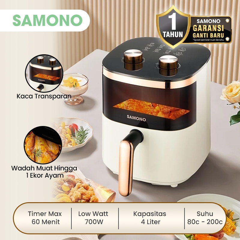 SAMONO Air Fryer Transparan 4 Liter 700 Watt SNI Hemat Daya Kapasitas 4 Liter SW-AFW04S