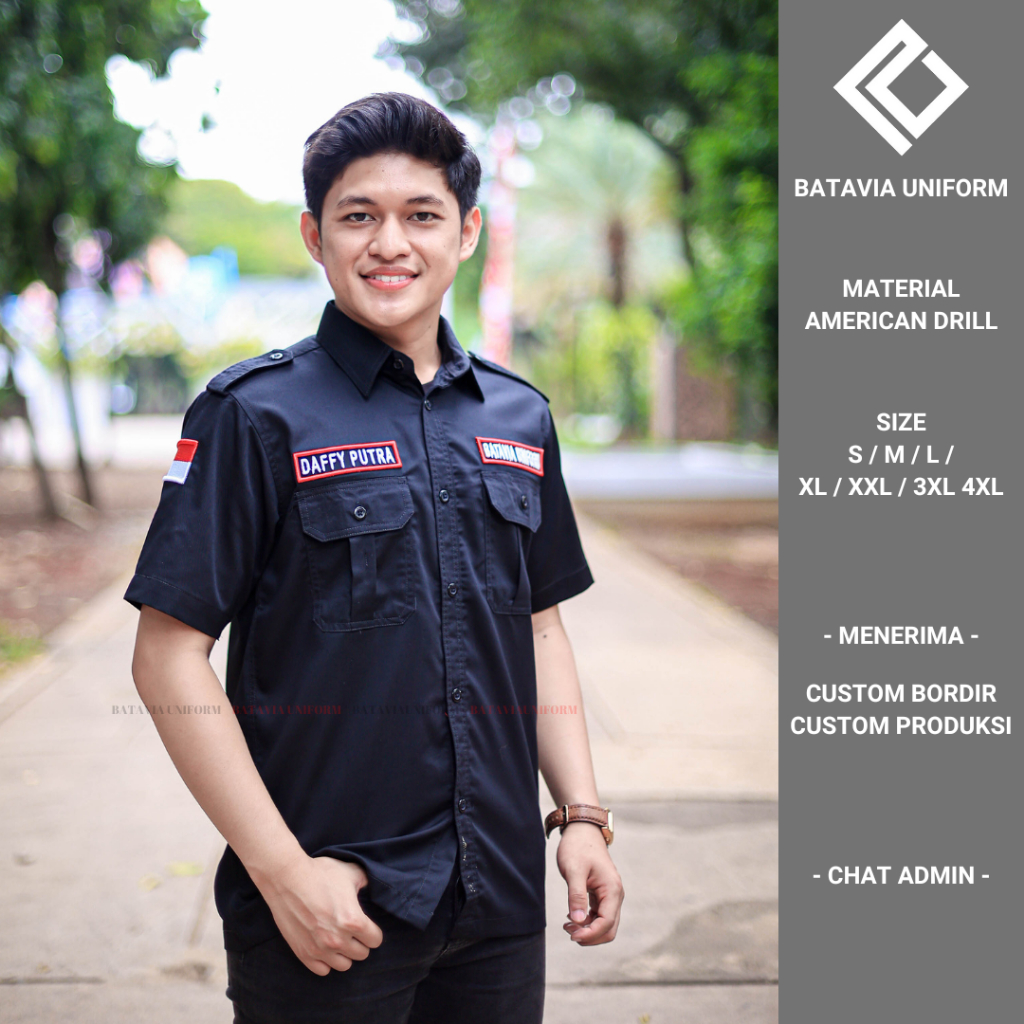 Baju Kemeja PDL PDH Kerja Kantor Komunitas Original Premium Lengan Pendek Material American Drill bisa Bordir dan Custom