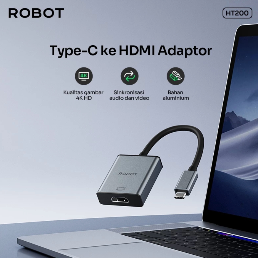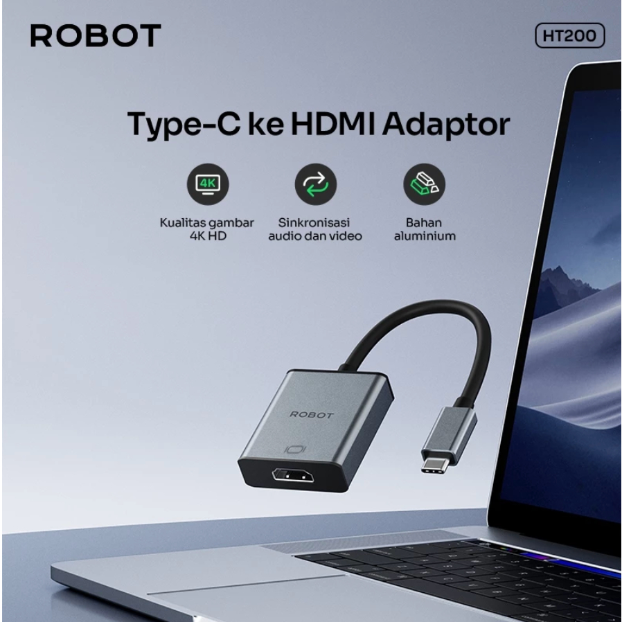 ROBOT USB Adapter Hub 4K HD Visual Type C To HDMI / Type C To VGA HT200 / HT300 Original