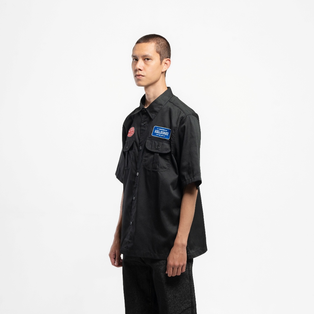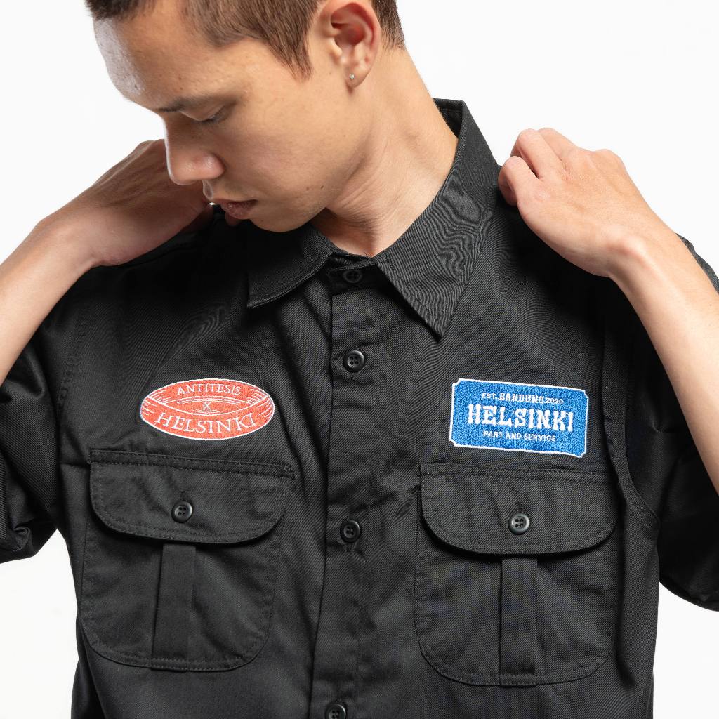 Helsinki.co Workshirt Pria Hitam Helsinki X Antitesis American Drill Fullbordir | Kemeja Pria | Kemeja Kerja