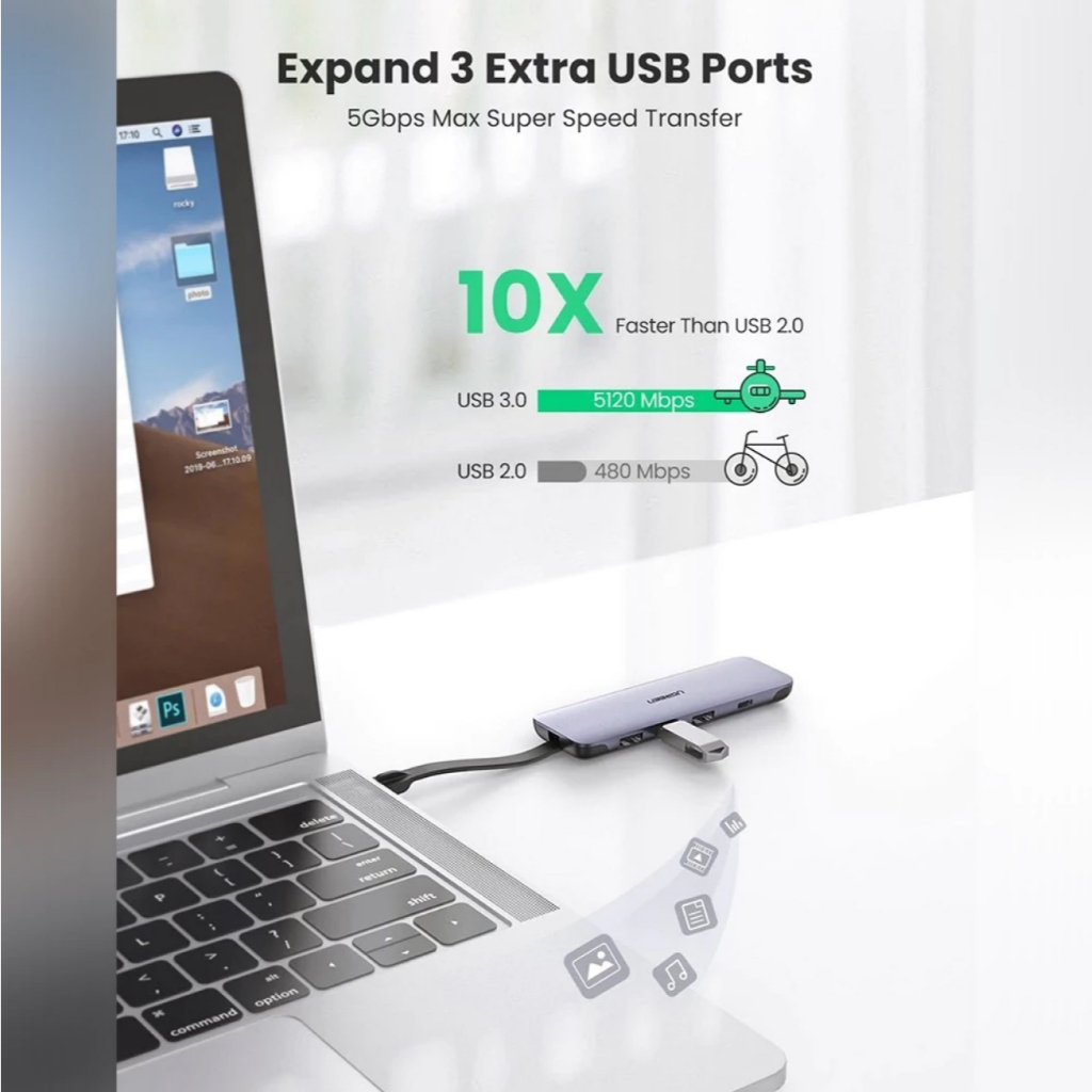 UGREEN USB HUB C Laptop Macbook Komputer HDMI VGA Jack Audio RJ45 TF SD CARD