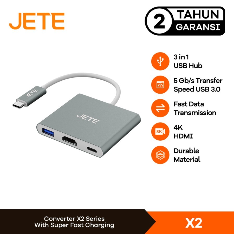 JETE X2 Converter USB Type C to HDMI Multiport 3in1 - 2 Tahun