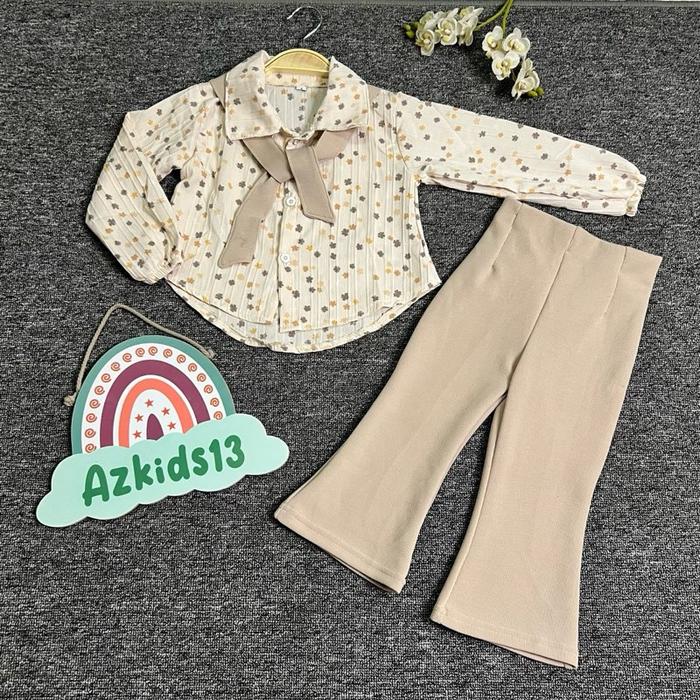 Oneset Lorenza Koreanstyle 2-10Thn Anak Perempuan Celana Cutbray Highwist Fashion Cewek - Cream Late, 2-3Thn