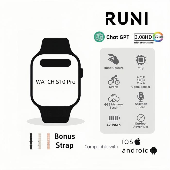 Runi Watch S10 Pro Amoled Screen Hd Display Smartwatch Ip68 Waterproof Bluetooth Android Ios Jam Tangan Pintar 42Mm 46Mm