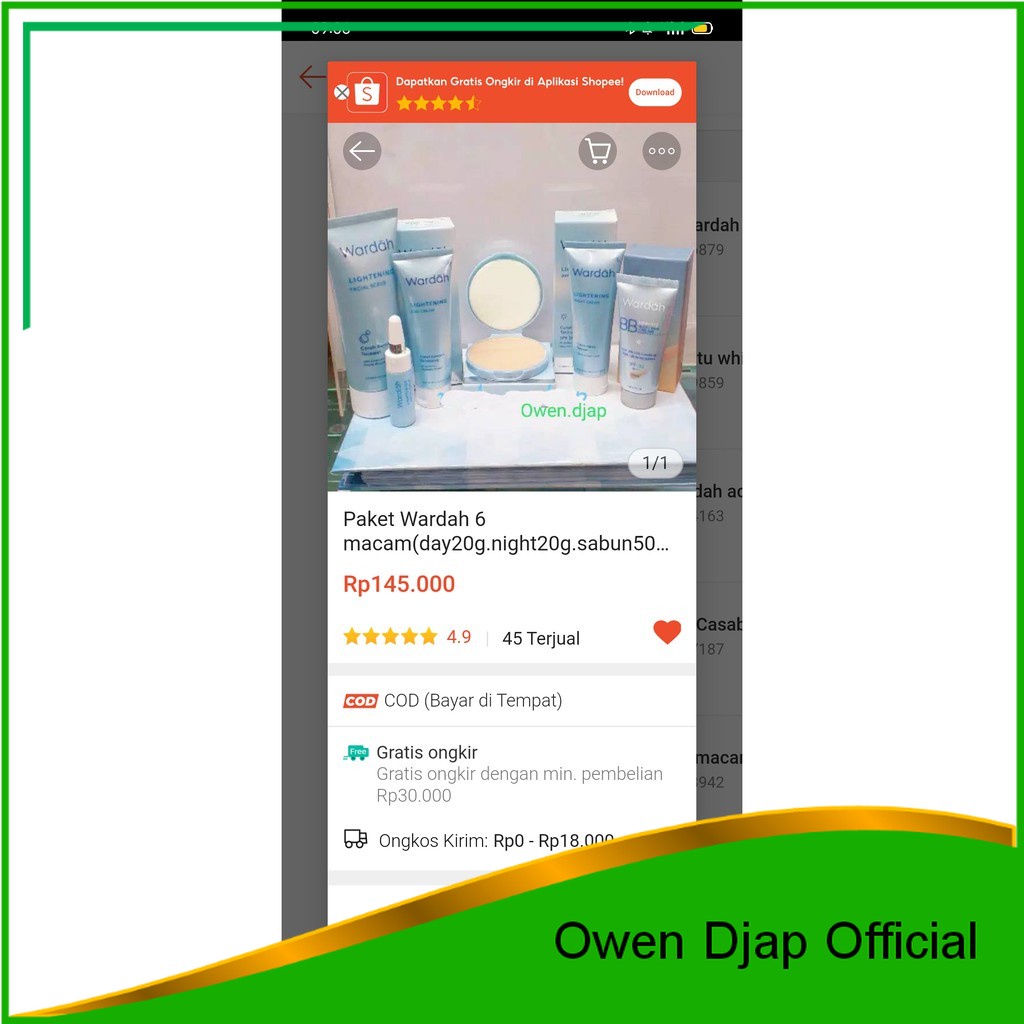 Paket Wardah 6 macam(day20g.night20g.sabun50ml.serum1pcs.bb cream.refil bedak)