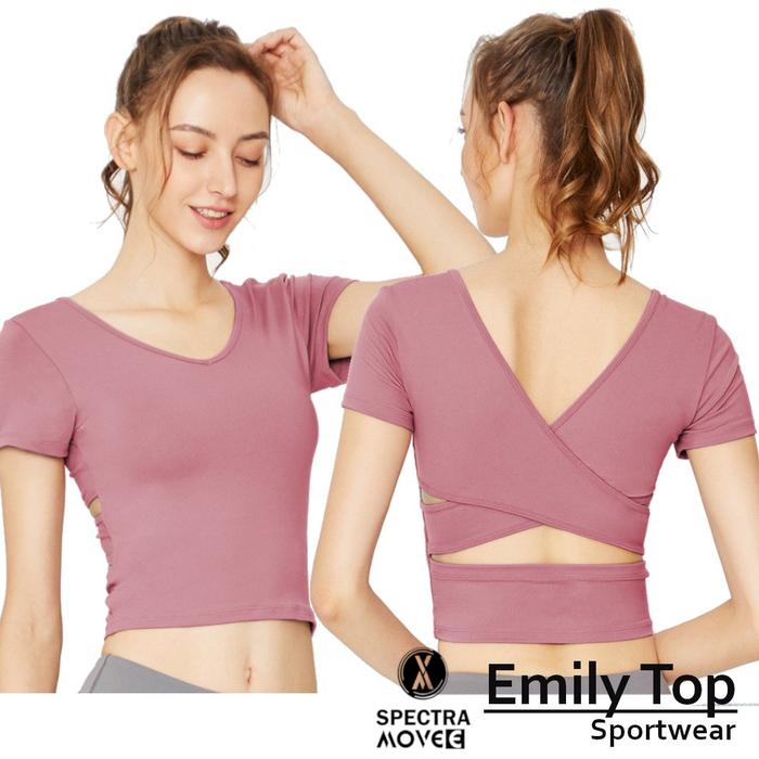 Baju Senam M-Xxl Emily Top Atasan Crop Kaos Olahraga Wanita Gym Fitness Dance Sport - Dusty Pink, M-L