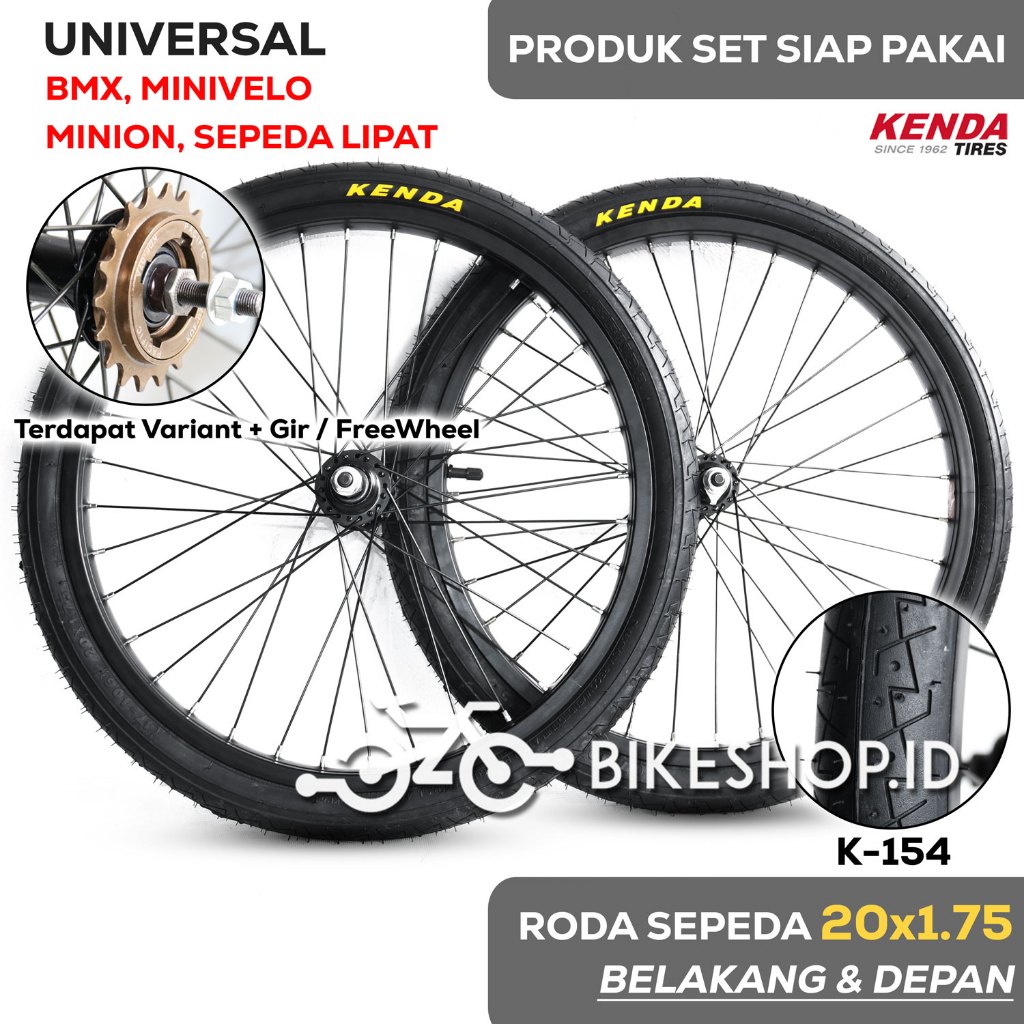 Roda Sepeda 20 x 1.75 DEPAN BELAKANG + GIR Siap Pakai KENDA Produk Set Wheelset Full Hitam Ban Luar K-154 BMX | High Quality