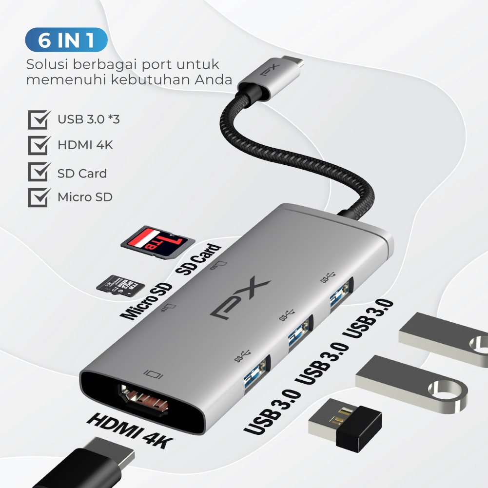 USB Hub Converter Type C 3.1 Macbook Laptop HDMI 6 in 1 PX UCH1600