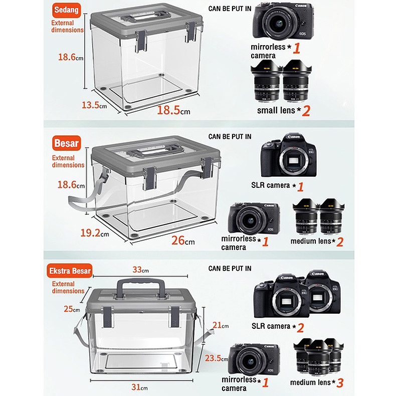 [Mall] SLR Lens Drying Box 3 in 1 Set DryBox Kamera Digital Kotak Tahan Lembab aksi lensa kamera Canon Nikon Fuji Lumix