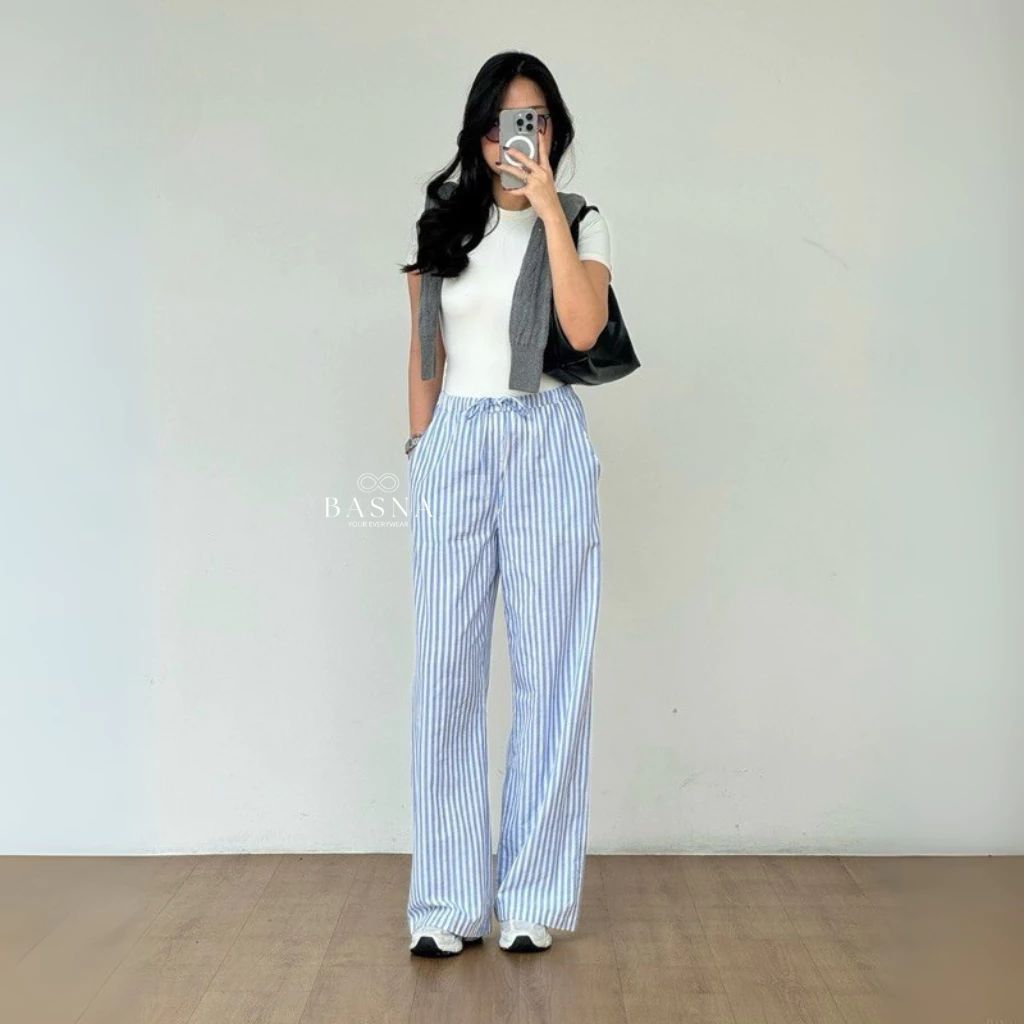 Everyday Pants - Stripe Pants - Celana Panjang Wanita Baggy Kantor Kuliah Motif Garis Kulot stripe