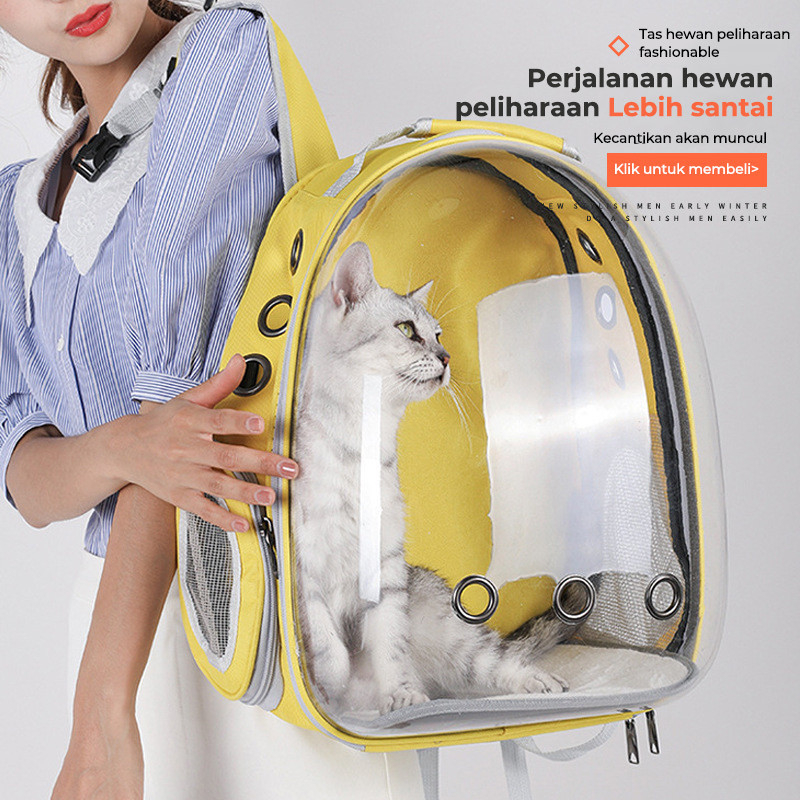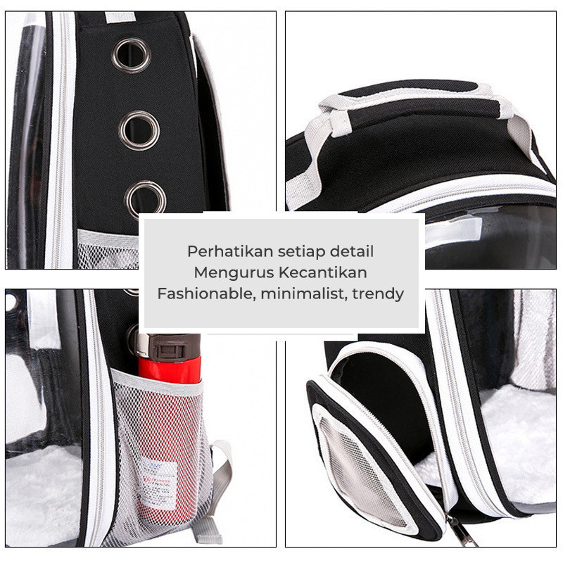 Tas Ransel Astronot Kucing Tansparan Pintu Samping / Tas Travel Gendong Hewan Kucing & Anjing