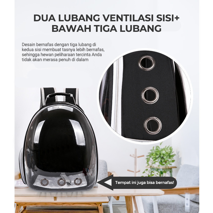 Tas Ransel Astronot Kucing Tansparan Pintu Samping / Tas Travel Gendong Hewan Kucing & Anjing