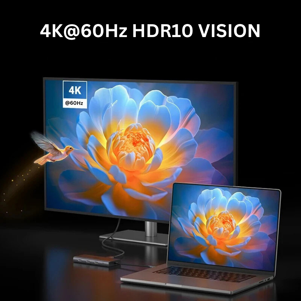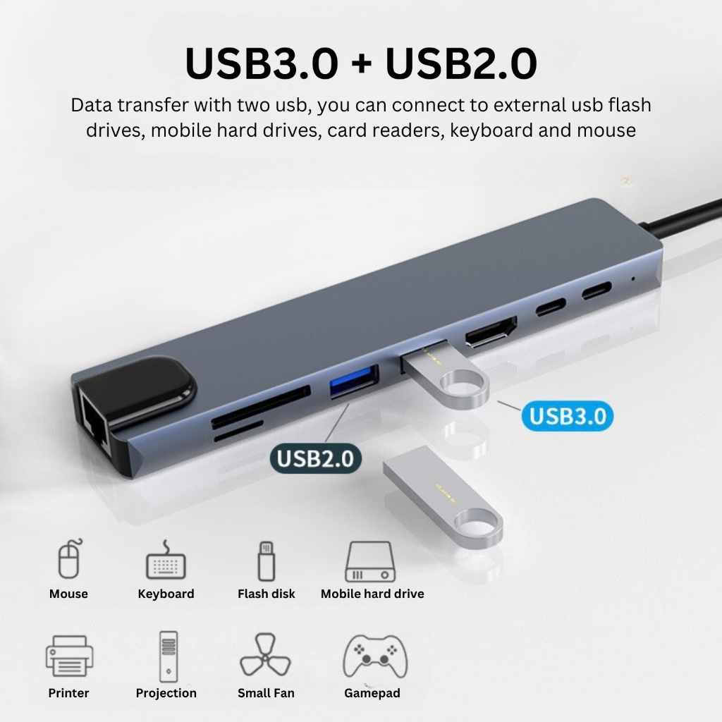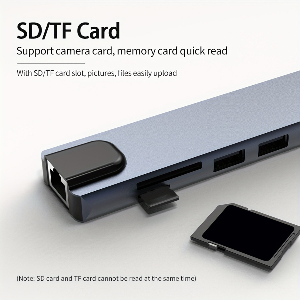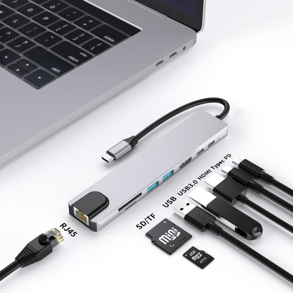 UPLU Type C to HDMI 4K 60Hz 8 in 1 Hub Converter USB Micro SD TF Card RJ45 PD 100W Fast Charging