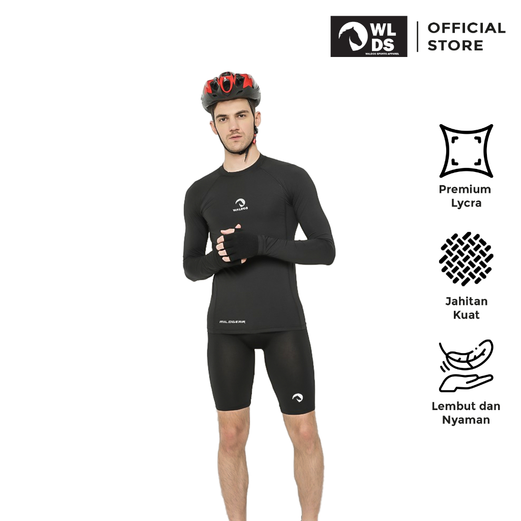 WLDS 1 Set Setelan Olahraga Pria Baselayer + Compression Sepeda Cycling Manset Jersey