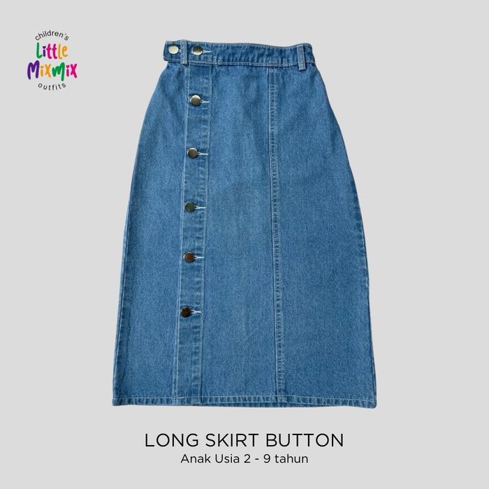 Mixmix Long Skirt Button - Highwaist Rok Span Panjang Kancing Jeans Fashion Anak Perempuan 2 - 9 Tahun - Lsb - Medium B