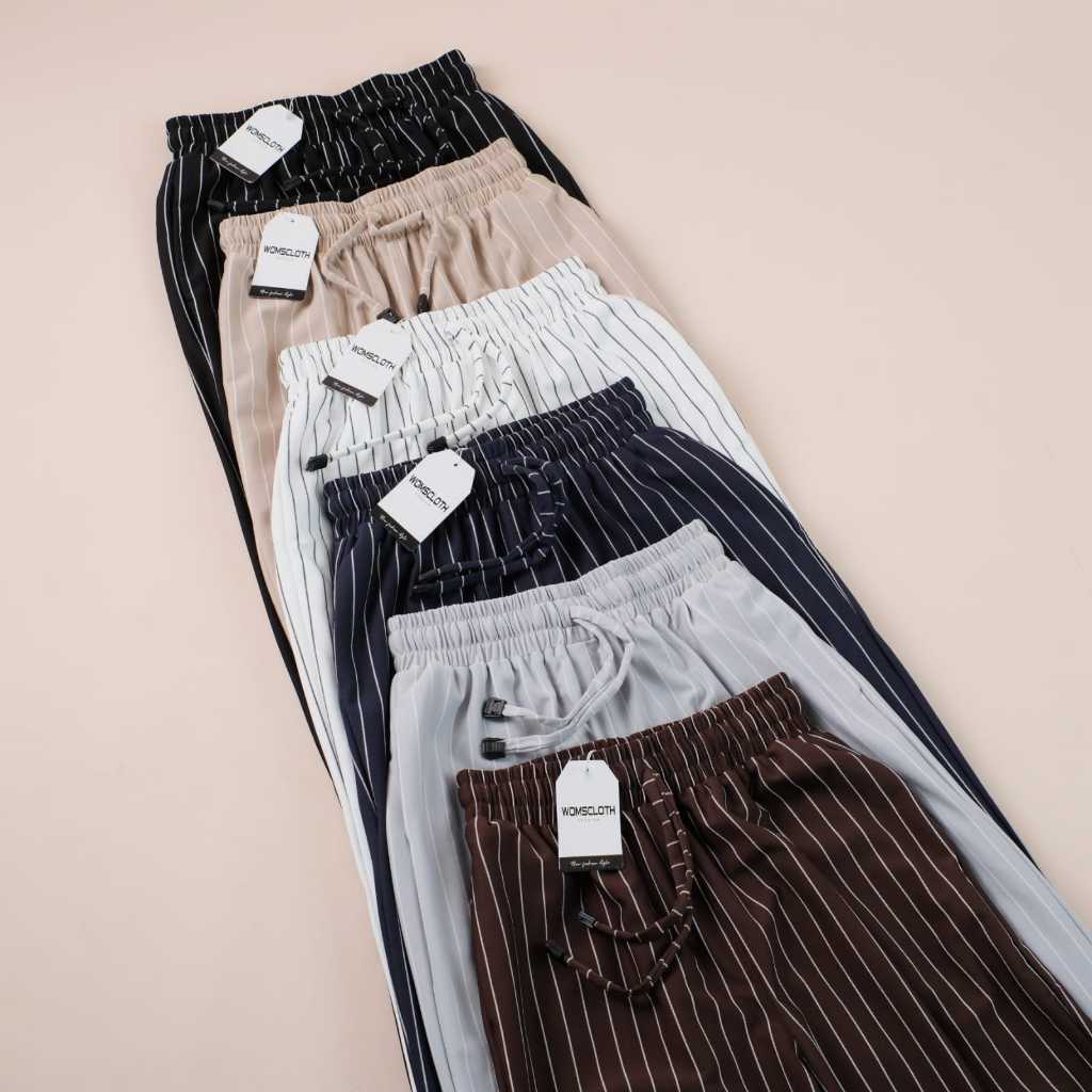 Womscloth - Everyday Pants - Stripe Pants Bangkok - Celana Panjang Wanita Baggy Kantor Kuliah Motif Garis Kulot Pinstrip