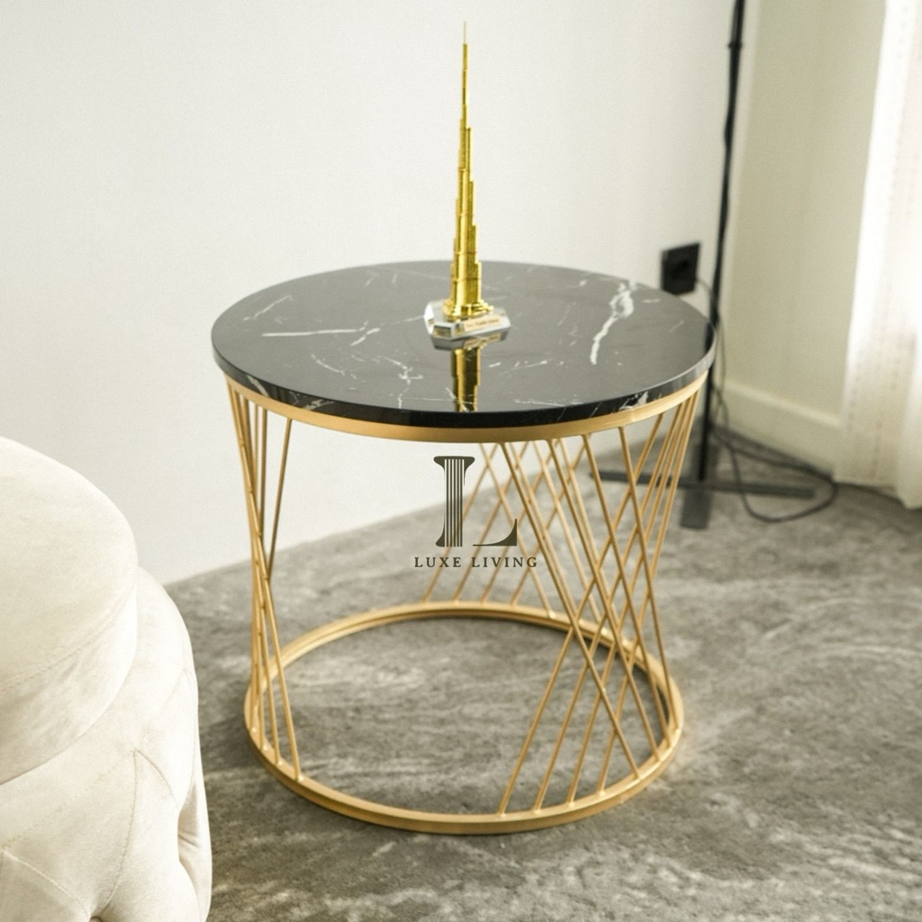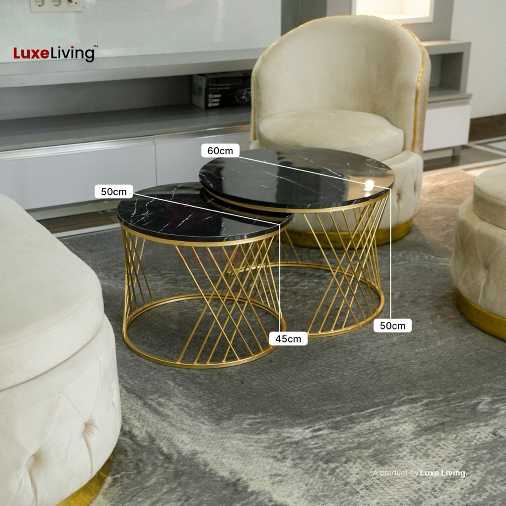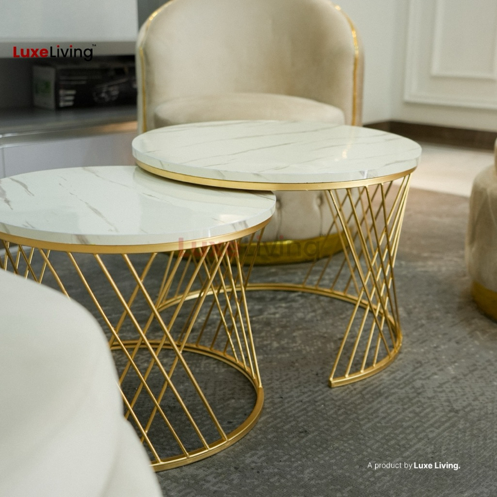 [Star] Meja Tamu Minimalis Besi Industrial Meja Ruang Tamu Set Alula Gold Susun Hpl Motif Marmer Luxe Living