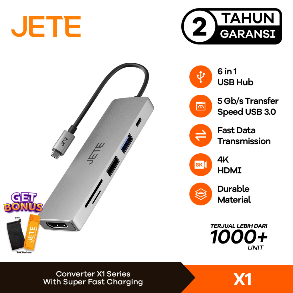USB C Hub 6 in 1 JETE X1 - Adapter Type C to HDMI USB 3.0 Converter Multiport - Garansi Resmi