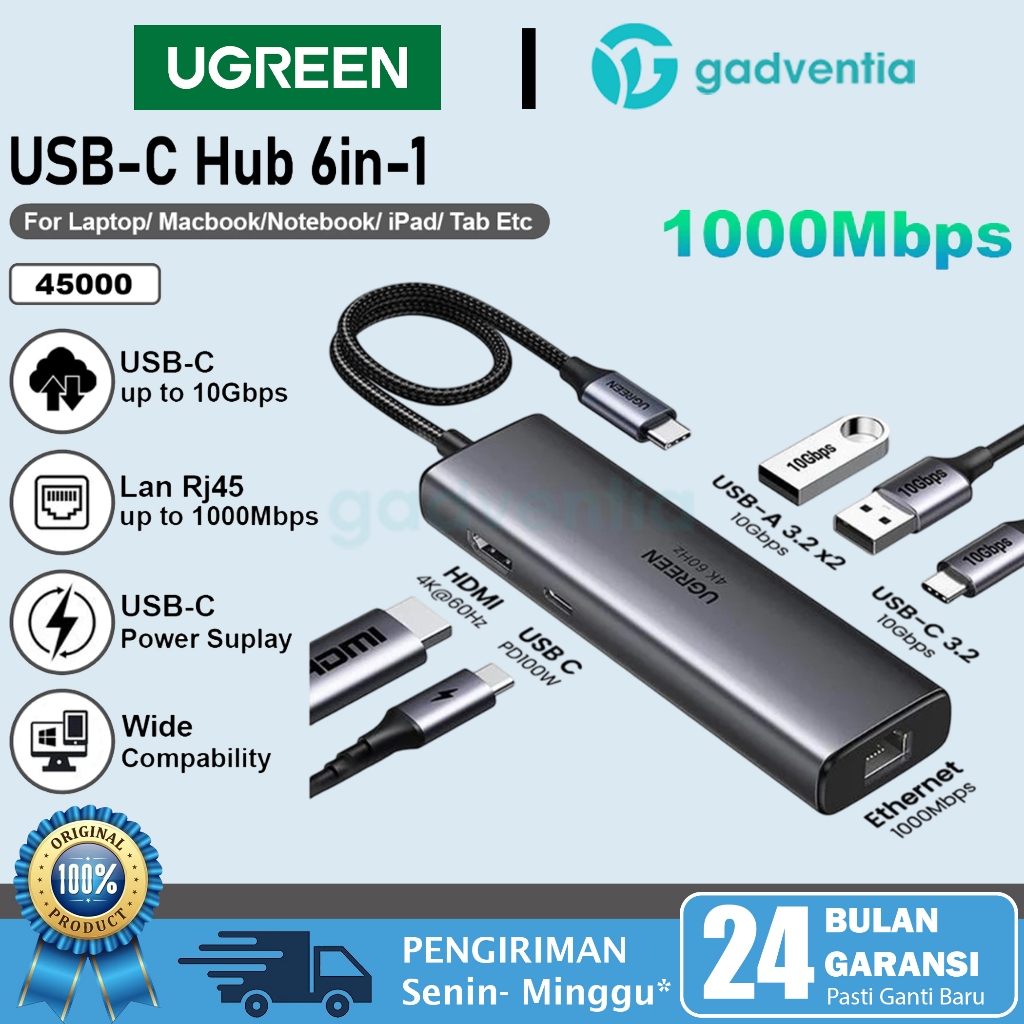 Ugreen 45000 Hub 6 in 1 Type C Hub to 4K Hdmi Usb 3.0 Card Reader No & With Power Dery 100W