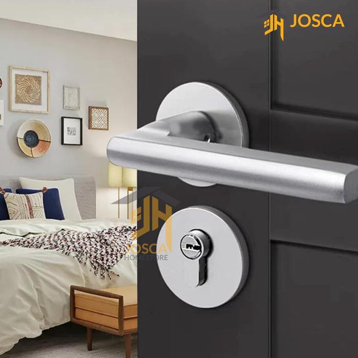 Terlaris Gagang Pintu Gaya Eropa Full Handle Set Silver Premium Door Handle Kunci Pintu Keren