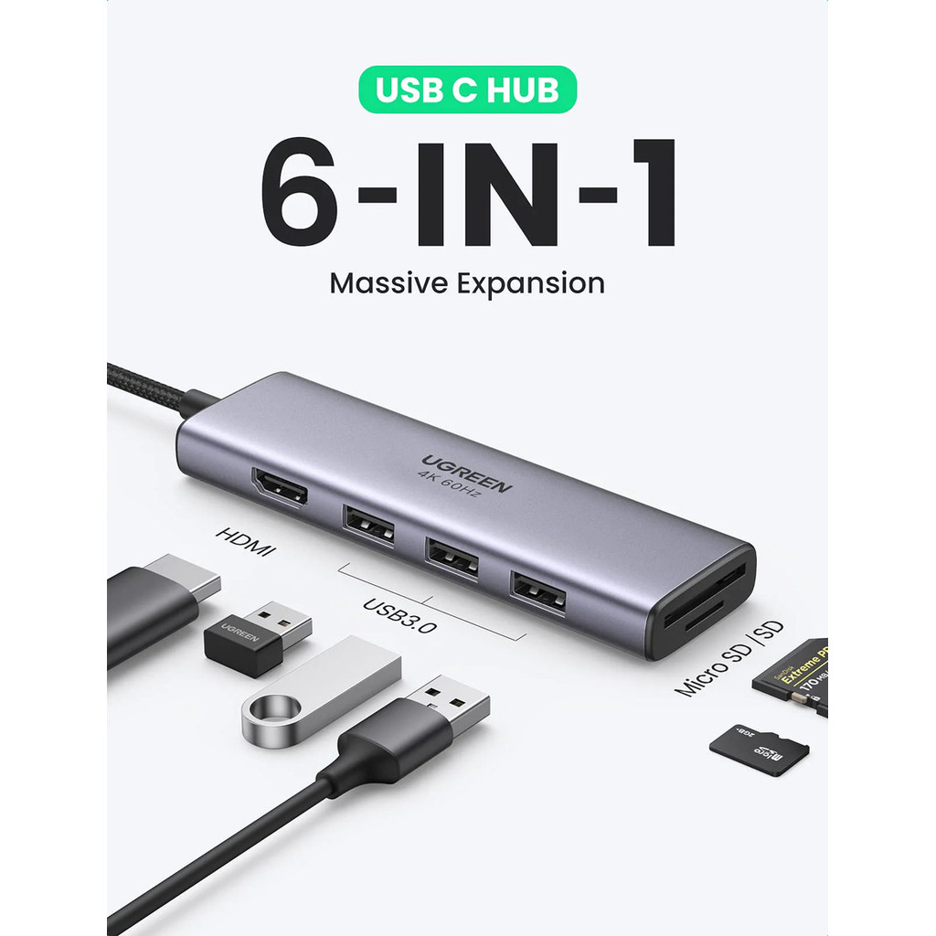 Ugreen Usb Hub Type C Usb 3.0 Hdmi 4K 60Hz Sd/Tf Card - 15214 20956A 15495 60600