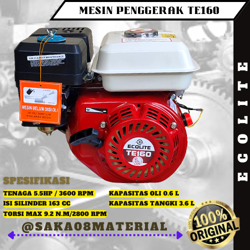 JUAL MESIN PENGGERAK BENSIN SERBA GUNA 4 TAK TE160 TE200 5.5HP 6.5HP ECOLITE ORIGINAL TERBARU / MOTOR BENSIN 5.5HP 6.5HP