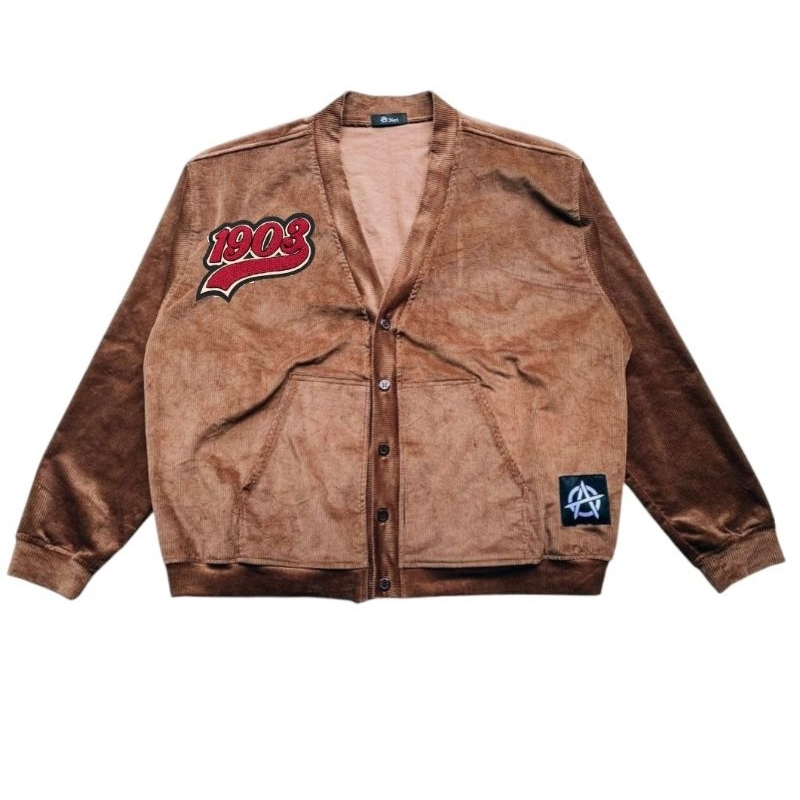 Cardigan Boxy Corduroy Unisex Pria Wanita Garis-Garis Katun
