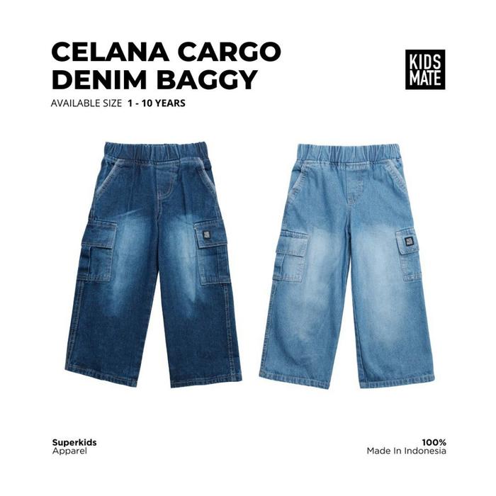 Celana Cargo Denim Baggy By Kidsmate Fashion Baggy Jeans Anak Laki-Laki - Blue, M (3-4T)