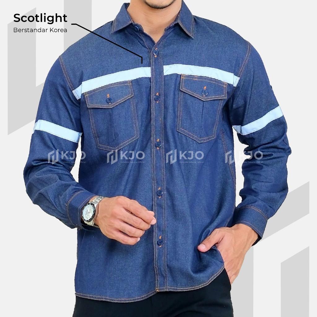 Baju Wearpack Kemeja Safety Jeans K3 Proyek Tambang Lengan Panjang - Pakaian Seragam Werpak Kerja Atasan Scotlite Lapang
