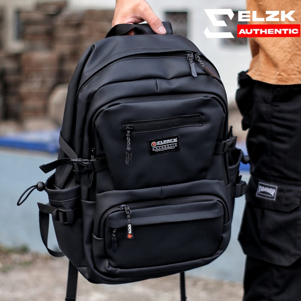 Elzck Hubner Tas Ransel Pria Hitam Backpack Tas Kerja Kuliah Sekoah Trendy Original