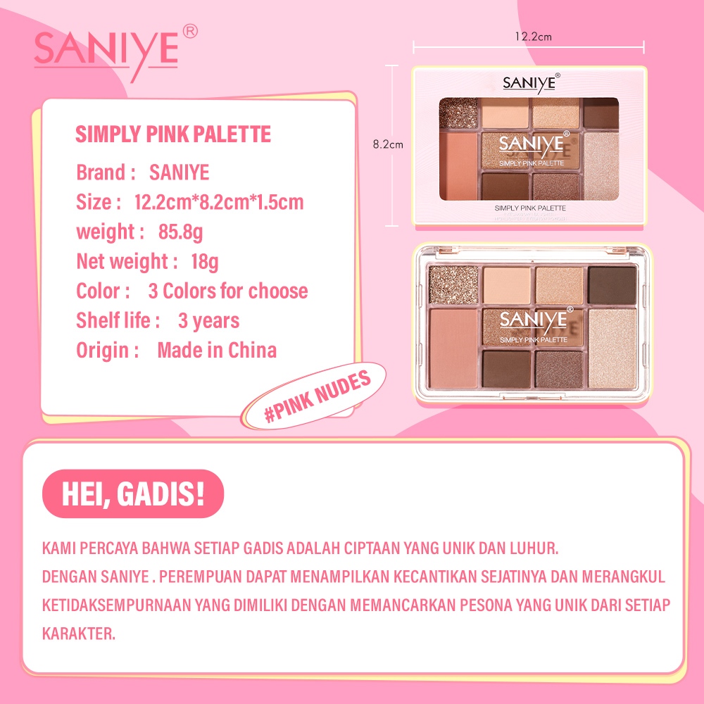SANIYE [BPOM] Eyeshadow 10 Warna High Pigmented Waterproof and Long Lasting Riasan Mata Eye Makeup E225