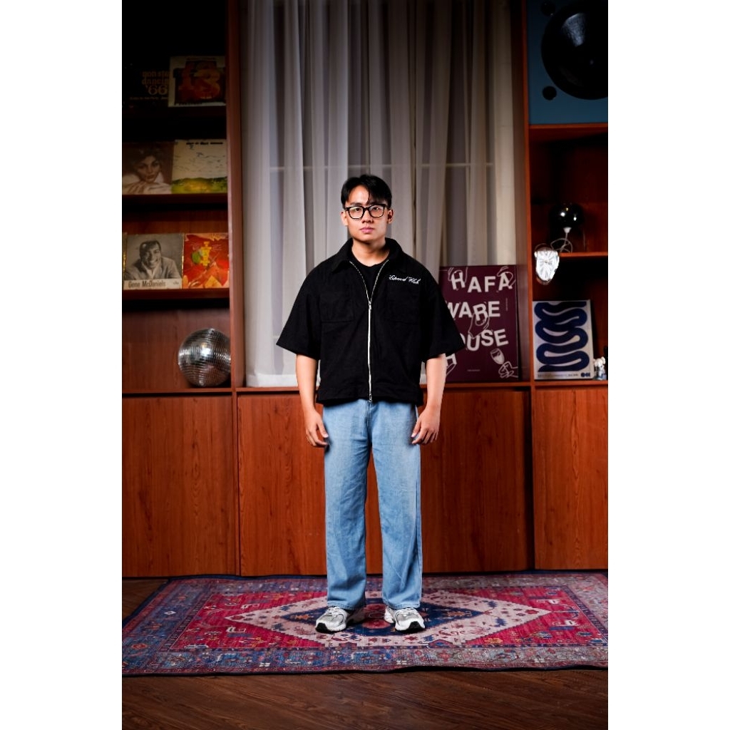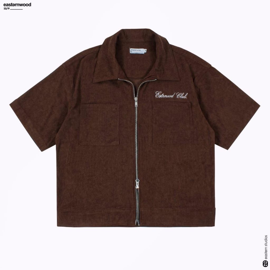 Easternwood Kemeja Corduroy Boxy Lengan Pendek Double Zipper Resleting