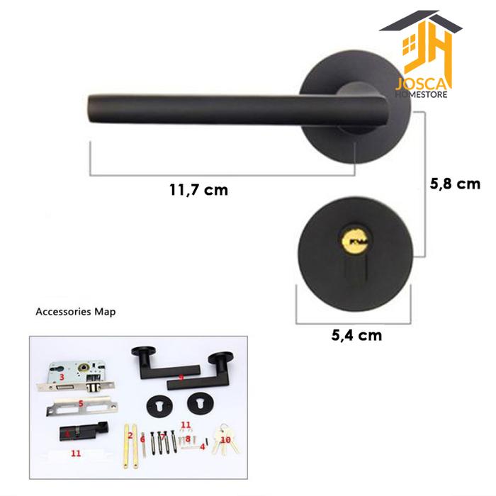 Promo Kunci Pintu Full Handle Set Gagang Pintu Lurus Black Doff Premium/ FULL SET Keren